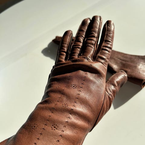 Peak Performance -merkkiset kauniit tummanruskeat naisten nahkahanskat, koko M.