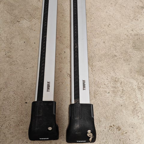 Lukittavat Thule WingBar kattotelineet, jotka ovat erittäin hiljaiset ja laadukkaat. Leveys riittää isompaankin autoon ja esim. Useamman polkupyörätelineen kiinnittämiseen.