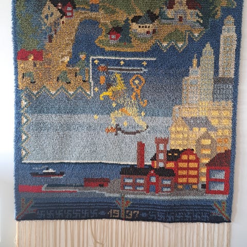 Ann Jonassonin suunnittelema suomalainen ryijy, jonka koko on noin 150x100 cm. Materiaalina on villa.