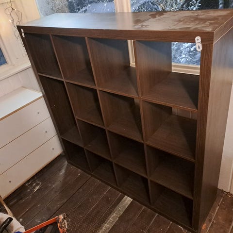 Monta lokeroa, takaseinä vähän löysä.
