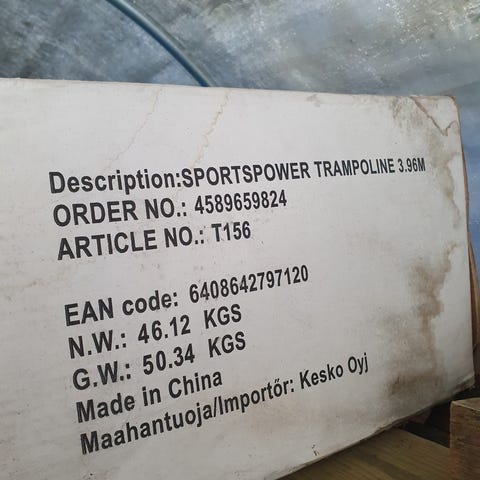 Annetaan Trampoliini, jos jaksaa tulla purkamaan ja viemään pois. Mukaan suojaverkko. Kangas on ehjä.
