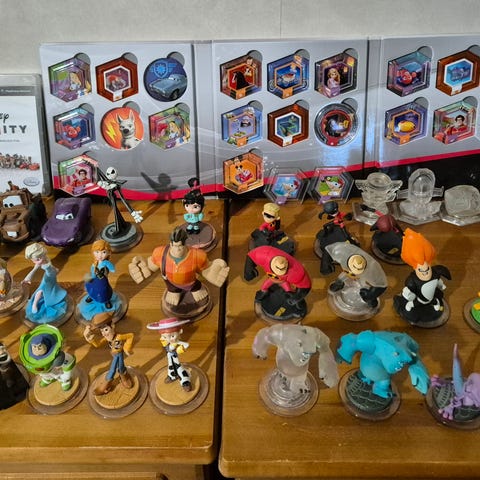 Disney Infinity pelifiguurit ja alusta. Useita eri Disney- ja Pixar-hahmoja.