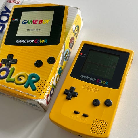 Violetti läpikuultava Nintendo Gameboy Color konsoli.