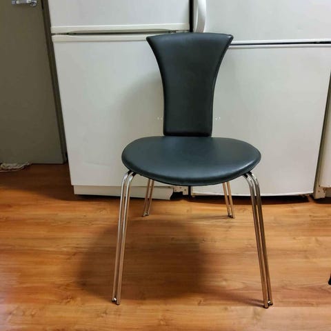 No brand keinonahkainen tuoli, väriltään musta. Istuimessa ja selkänojassa on ruututikkaukset ja pehmusteet. Runko ja jalat ovat krominväristä metallia, malliltaan kevyesti taivutetut. Sopii esimerkiksi ruokapöydän tuoliksi, työtuoliksi tai lisätuoliksi olohuoneeseen tai makuuhuoneeseen.