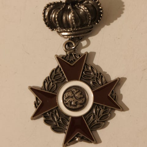 Metallinen rintamerkki, jossa musta tausta ja kultainen kuviointi. Keskellä on ristin ja ympyrän muodostama tunnus sekä alareunassa numero 30. Merkki on pieni ja pyöreähkö, ja siinä on koristeellinen lehväkuvio. Sopii esimerkiksi keräilyyn tai asusteeseen kiinnitettäväksi rintamerkiksi, mmm.