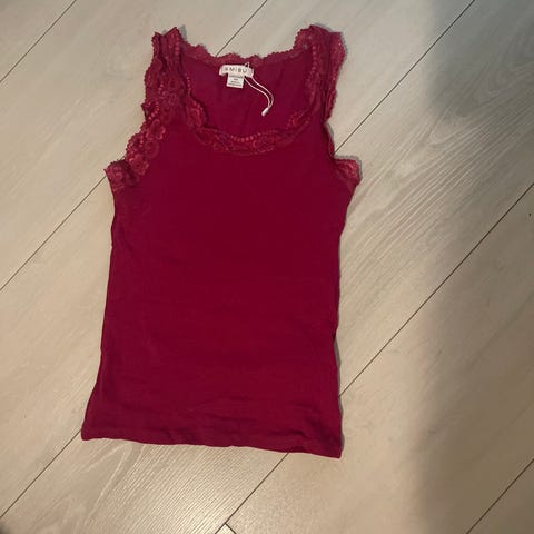 Nätti hihaton toppi, valkoinen. Takana kiva läpikuultava pitsi. Erittäin hyvässä kunnossa.