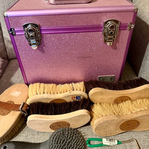 ”Yllätys”kassi erinäisiä tarvikkeita ponille. Olleet käytössä säkä 146cm korkuisella sirolla ponilla. Kassi sisältää mm.