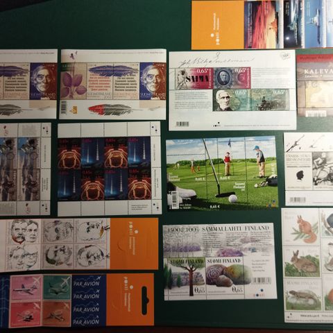Suomi postimerkkierä kokoelma. Useita erilaisia suomalaisia postimerkkejä arkeissa, eri aiheilla ja väreillä. Sopii esimerkiksi keräilyyn tai postitukseen. Merkit ovat käyttämättömiä arkeissa. Näiden yhteenlaskettu käyttöarvo on 26 euroa!