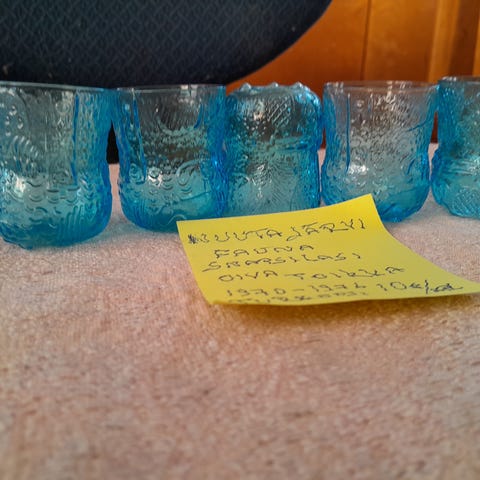 Ehjät ja hyväkuntoiset ruskeat Fauna- lasit. Korkeus 7 cm. Yhteishinta molemmille 28 euroa.