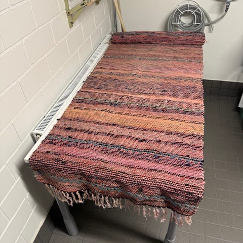 Punainen pitkä räsymatto. Kunto hyvä ja pesetetty viime kesänä pesulassa. Haku Kuopion Särkiniemestä. Hinta 30e/tarjoa.
