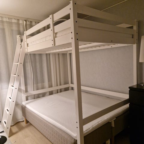 Lisää kuvia saa pyytää ja voimme tarvittaessa purkaa sängyn jo valmiiksi.