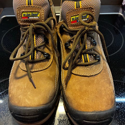 Muutamana päivänä käytössä olleet hyväkuntoiset turvakengät. Koko 43. Ovat himpun verran isohkot omaan jalkaan.