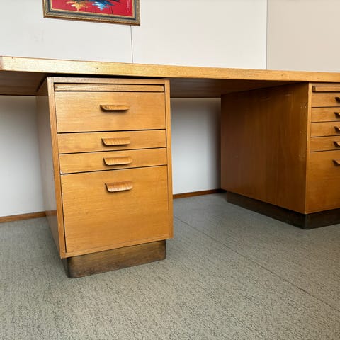 Korkeussäädettävä työpöytä. Runko hankittu Rustasta puolitoista vuotta sitten. Kansi vaihdettu puiseksi. Puisessa kannessa kulumajälkeä havaittavissa.Alkuperäinen kansi on vielä tallessa.