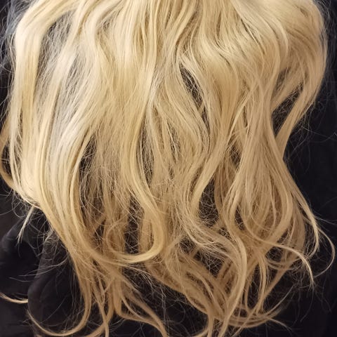 Keskellä olevasta kiharasta olen hiukan keventänyt pituudesta.
