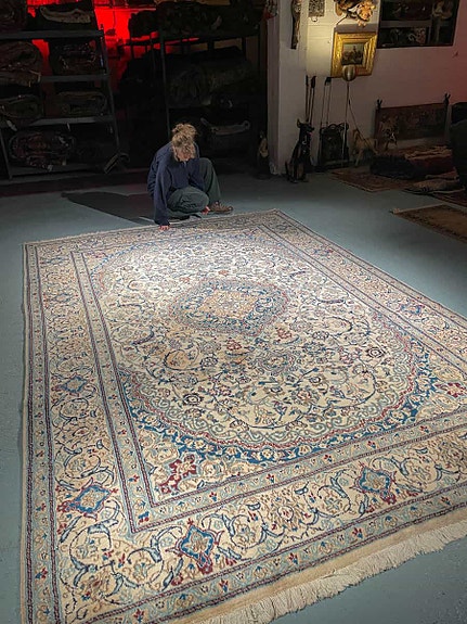 käsinsolmittu itämainen aitomatto villamatto vintage persialainen aito villa keshan vaalea beige ruskea punainen sininen iso suuri palatsi matto käsinkudottu käsin käsintehty käsityö antiikkimatto vintagematto helsinki helsingissä