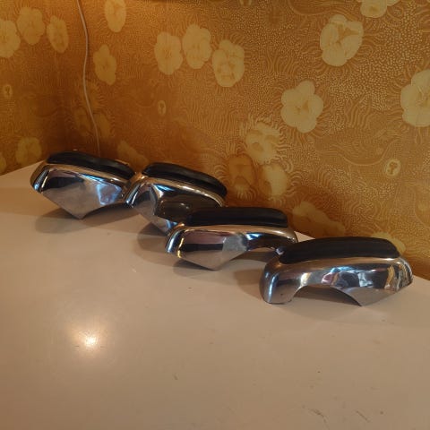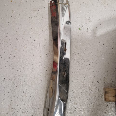 Takapuskurin keskipala. Suora, mutta himmeäkrominen.