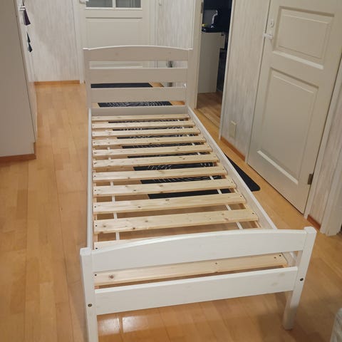 Ollut lapsella omassa huoneessa, mutta nyt on aika vaihtaa isompaan. Kunnossa oleva sänky, petauspatja sekä suojalakanat kuuluu kauppaan.