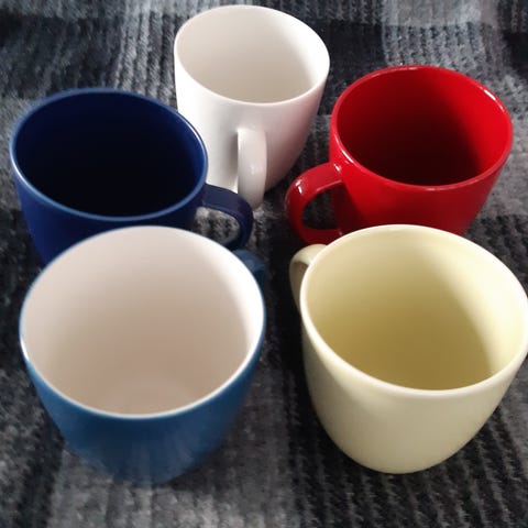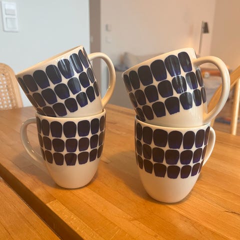 Heikki Orvolan suunnittelemat mukit. 15,-/kpl.