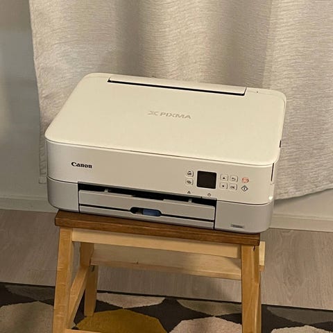 Canon monitoimitulostin valkoinen. Laitteessa on tasoskanneri ja yläsyöttö tulostettaville arkeille. Etupuolella on ohjauspaneeli perustoiminnoille. Sopii asiakirjojen ja kuvien tulostamiseen, kopiointiin ja skannaukseen koti- tai pientoimistokäytössä.