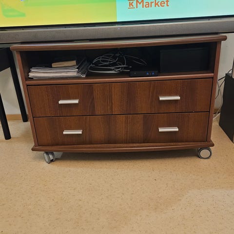 Kuvien mukainen tv-taso myynnissä. Varmaa ostopaikkaa ei ole muistissa, mutta joku ikea/jysk malli. Siistissä kunnossa, yhdessä kuvassa näkyy kolhut mitä löytyi. Yksi noista takalevyistä on asennettu vähän vinoon joten reuna vähän näkyy tuosta takaa. Näkyy tuossa kolmannessa kuvassa.