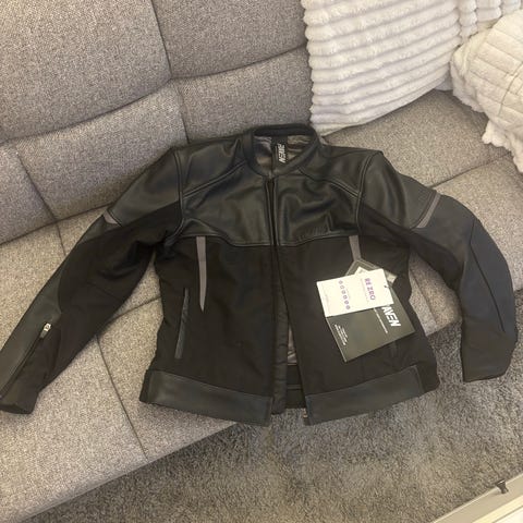 Halvarssons moottoripyörätakki kokoa 42 sekä Jofama moottoripyörähousut kokoa 42. Molemmat nahkaa ja naisten kokoa.