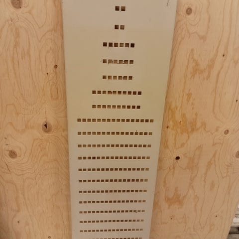 Vaalean harmaata tehdasmaalattua reikälevyä. Reikäkuvio kolmiojako ja reikä 3mm. Levyjen mitat 3310x390. Levyjä on neljä kappaletta.