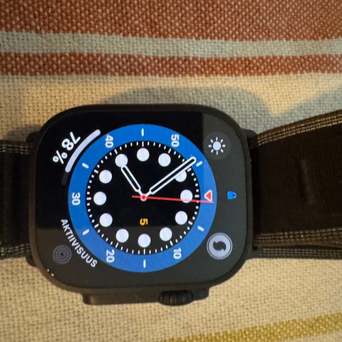 Apple Watch Ultra älykello mustalla rungolla ja mustalla Alpine loop rannekkeella. Mukana alkuperäinen myyntipaketti sisältöineen.