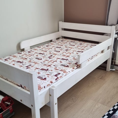 Entisöity hyvä kunto 90x115-190x110 + patja 80x180