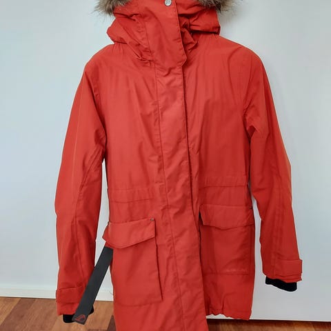 Hyväkuntoinen kuoritakki, malli takapuolen alle ylettävä parkatakki. Ei reikiä eikä hajuja. Väri tummansininen, vaikka kuvassa valo vääristää mustaksi. Koko 40, tosin on naftia mitoitusta, oli käytössä M-kokoisena.