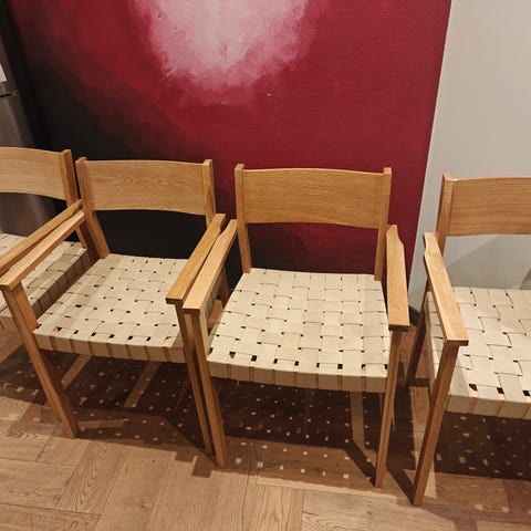 Myydään hyväkuntoiset Askon Line-ruokatuolit.