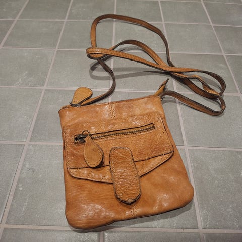 Käsilaukku, johon mahtuu kaikki tarpeellinen; puhelin, huulipuna, puuteri, luottokortti ja avaimet. Ja tilaa jää vielä pikkuostoksille. Käytetty, mutta hyväkuntoinen.