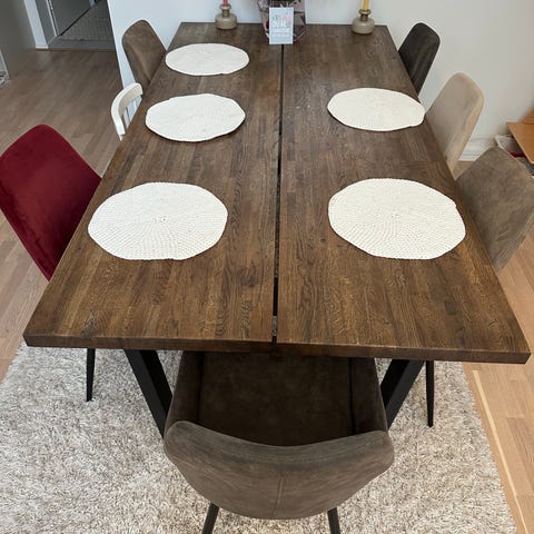 Ruokailuryhmä ruokapöytä ja 6 tuolia tumma puu