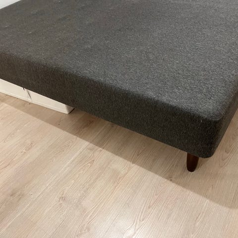 Yhdelle hengelle soveltuva Sotkan runkopatjasänky mustilla puujaloilla. Yleisesti siistissä kunnossa ja ehjä, pientä käytön jälkeä.