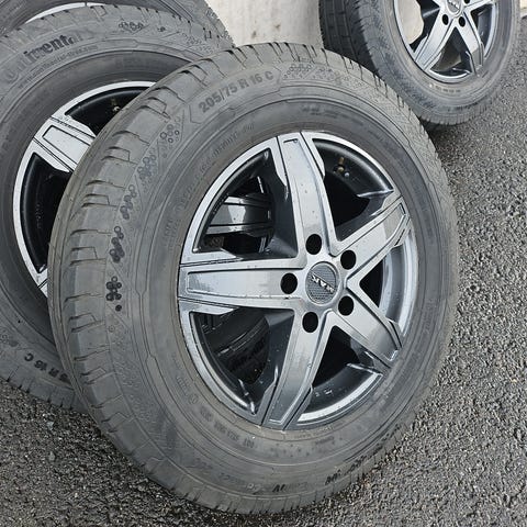 Pakettiauton renkaat, käytännössä ajamattomat. Pintaa joka kumissa 9.5mm
