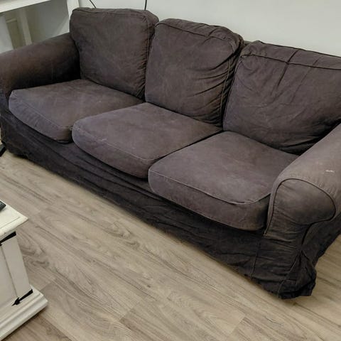 Sohvasta päälliset irrotettu kuvausta varten ja kunto kuvan mukainen eli kangastaja pehmikettä revennyt ja kaakaot kaatunut runko muuten ehjä. Päälliset likaiset ja koiran karvassa samoin sohvan pohjassa karvaa. Päälliset suht ok . Sisätyynyjen (selkänoja) ohut kangas myös repeytynyt Ainakin yksi pienenpieni reikä ja yhden istuimen vetoketju revennyt mutta ei näy kun on istuimen alla ja meikkivoidetta reunassa. Päällisten kulmat myös kuluneet . Tosiaan tässä kunnossa annetaan. Pesemisen vaivalla päälliset varmasti käyttökelpoisia ja pesurilla vois kaakaot saada pois. Vain nouto mielellään heti ja menee ensimmäiselle joka laittaa kellonajan monelta tulee ja nopeimmalle vastaan . Sohva nostetaan pihaan juuri ennen sovittu noutoa auton saa viereen ja selkänoja irrotettu . Nouto Ryttylä