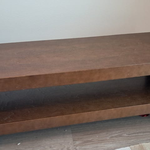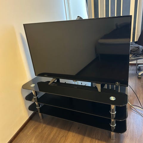 Harmaa tv-taso. Metalliosassa hieman kulumaa.