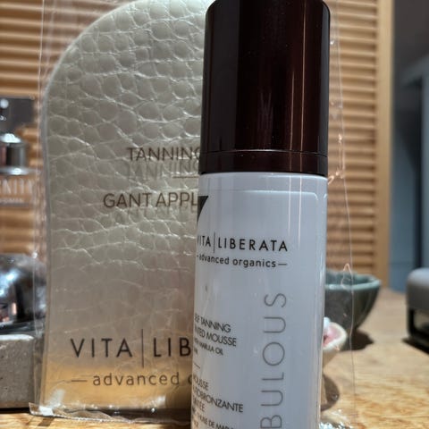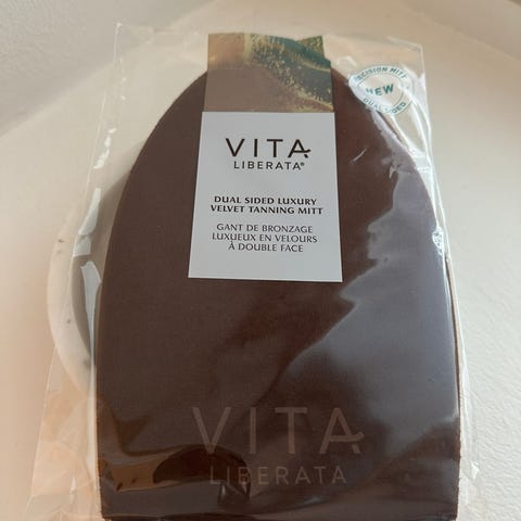 Uusi ja avaamaton tummanruskea levityskinnas. Pehmeä hanska, jolla itseruskettavan tuotteen levitys onnistuu helposti ja lopputuloksesta tulee tasainen