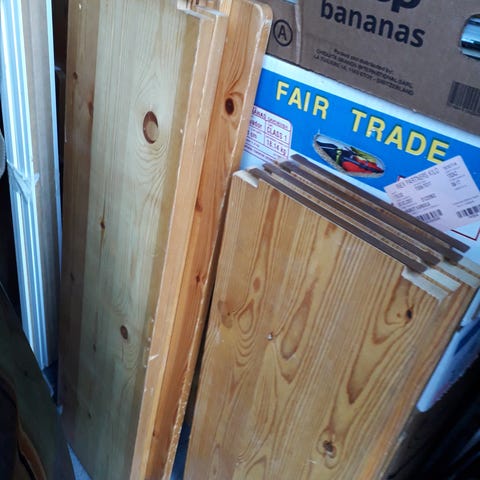 Kirjoituspöytä jossa mäntypuinen irtokansi sekä mäntypuinen laatikosto ja hyllykkö. Ollut poikaviikarin koulupöytänä joten kunto hieman kärsinyt. Kansi maalattu valkoiseksi, mutta maalipinta huono. Yhdestä vetolaatikosta etulevy irti. Vain nouto. Menee pieneen tilaan, koska kansi on irrallinen.