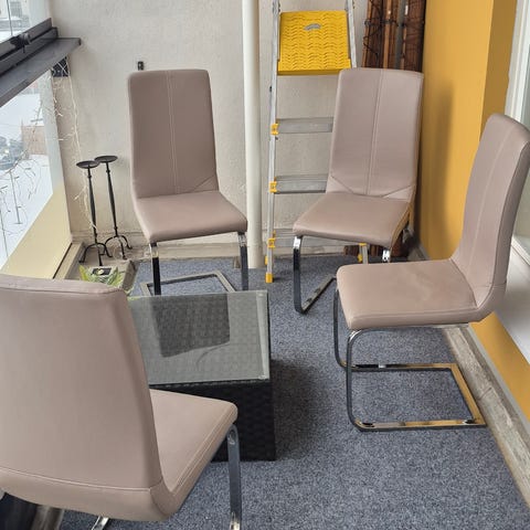 Keinonahka istuinpehmuste, maalattu puujalka, muovirunko