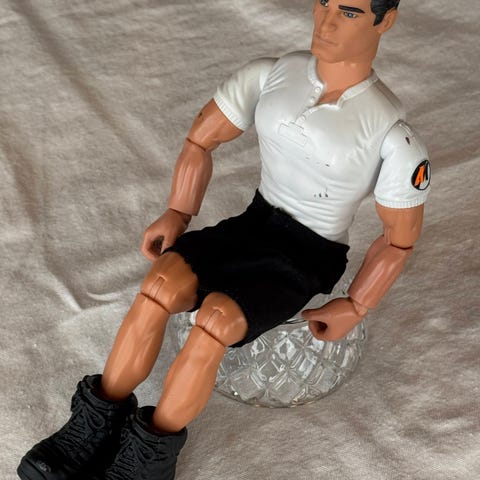 Myynnissä näyttävä ja hyväkuntoinen moottoripyöräilijä-nukke upealla crossipyörällä. Tämä sporttinen kuski on valmiina uusiin seikkailuihin!