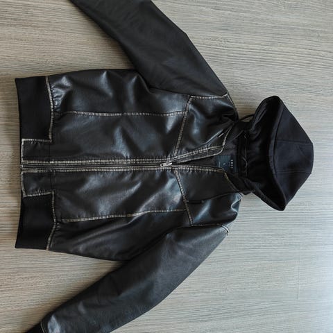 Keinonahkainen pehmeä takki. Koko L on pientä kokoa, vastaa ennemminkin kokoa M