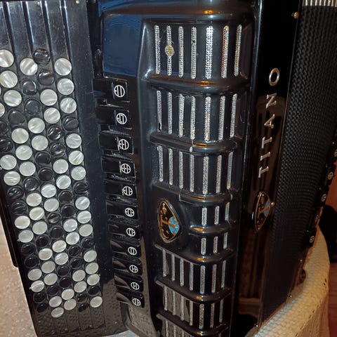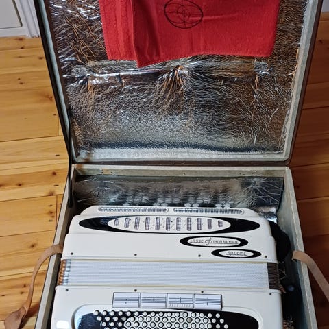 Titano Sunshine 4-äk harmonikka. Erittäin hyvillä kielillä sekä kirkkaalla soundilla. Erityisesti valsseissa toimii vallan mainiosti. Merkinta S maskissa tarkoittaa erinomaisia kieliä. Paino 11.5 kiloa. Hyvä laukku ja uutta vastaavat remmit. Erittäin näyttävä koristelu. Tästä hyvä soitin pitkäksi aikaa. Myös vaihto mahdollinen tapauskohtaisesti/napakka tarjous.