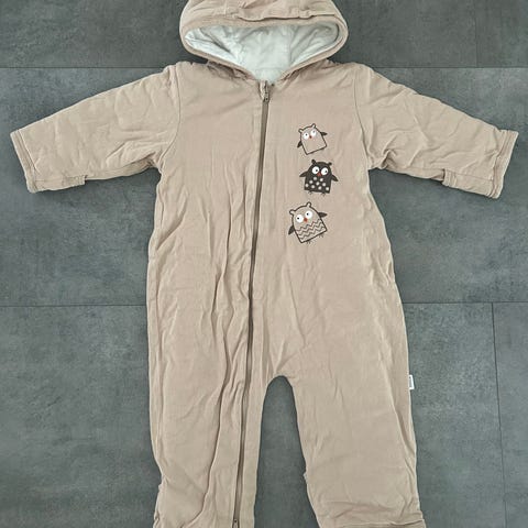 Tutta-merkkinen haalari koko 80 pörrömateriaalia sisäkäyttöön. Hupussa nallenkorvat. Pelastanut monet päiväkodin naamiaiset!