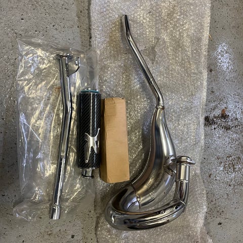 Tämä tehoputki menee kaasari sekä E5 mankeihin. Ollut käytössä noin yhden ajokauden. Kaikki osat tulee putkesta mukaan