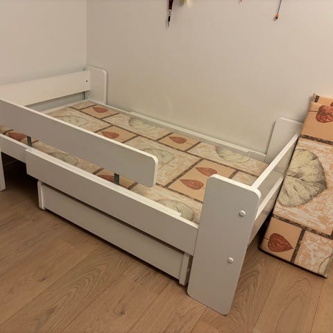 Kotimainen Unipuu‑lastensänky säilytyslaatikolla