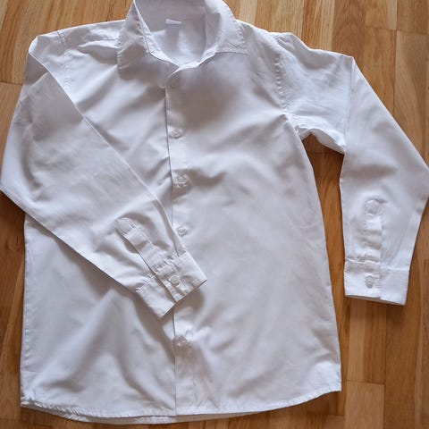 Hyväkuntoinen valkoinen lyhythihainen kauluspaita.