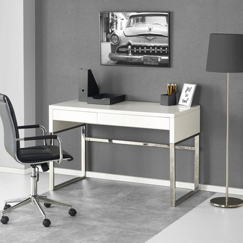 Kave Homen Julia-työpöytä on mainio työpöytä etätyöskentelyyn tai opiskeluun. Työpöydässä on siroon kokoon nähden hyvin säilytystilaa kahdessa vetolaatikossa sekä pöytälevyn alle piilotettuna. Latausjohdot saa halutessaan piiloon niitä varten tehdyn aukon kautta.
