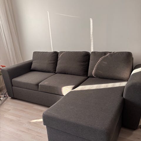 Myydään Askon tummanharmaa divaanillinen vuodesohva, jossa divaaniosan puoli vaihdettavissa. Divaaniosassa alla myös säilytystilaa esim. vuodevaatteille. Ollut meillä vierashuoneessa varapetinä.
