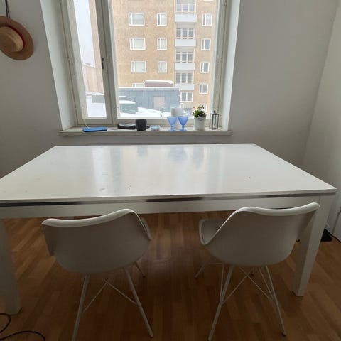Valkoinen iso ruokapöytä