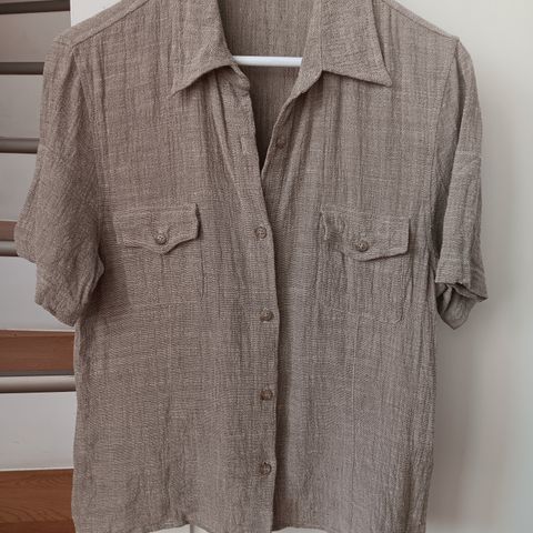 Pidemmän mallinen Pellavapaita. Kauniin laventelinsininen. Puunapit ja myös hihoissa napit ja tampit niin saa käärittyä. Hihassa jokunen pieni piste, näkyy kuvassa. Ei näy käytössä.